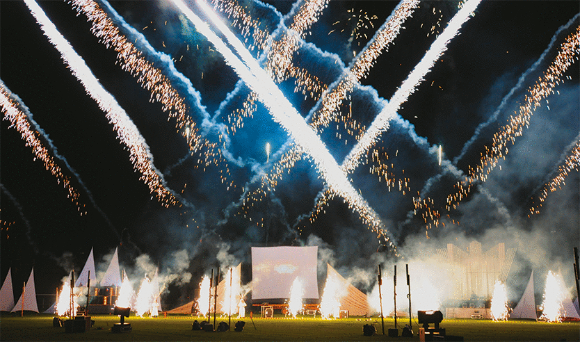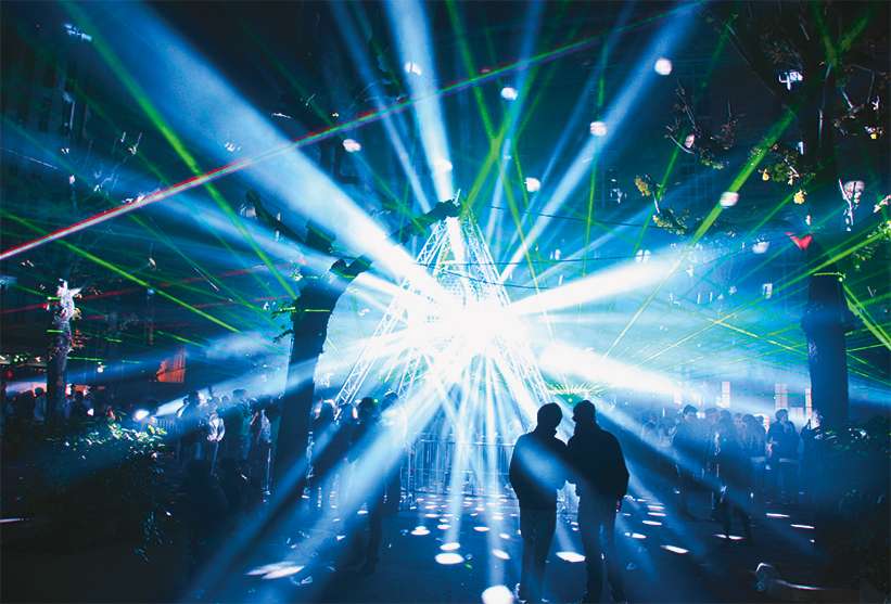 concerts, festivals, shows lumineux sur des monuments.Publicité et marketing :